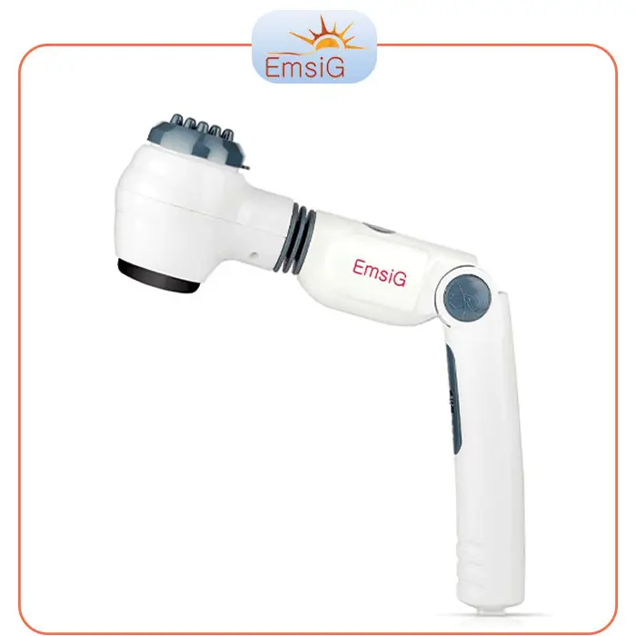 این ماساژور دارای دسته منعطف با قابلیت خم شدن و سطح بزرگ برای تطبیق بهتر با بدن است. همچنین دارای 13 وات قدرت ماساژ و 4 کلاهک جداگانه 180 درجه قابل تعویض ماساژ می باشد.